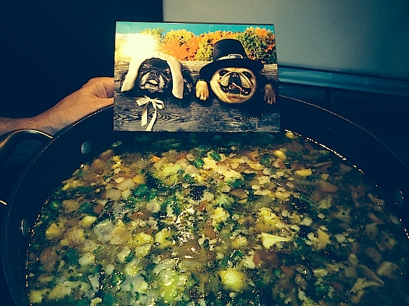 The next day hubby and I decided to make a soup with the combination of the smoked and breast meat and left over veggies. It was terrific fun, chopping and talking, and we opened another bottle of the Praxis Viognier to keep us company, the wine is such a versatile little number, it was our aperitif and our dinner wine for the day. The soup bubbled, we played scrabble, then sat down to absolute wintery comfort food perfection!