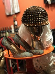 The free tastes are for real – all seventy of them. There’s great music playing, a relaxed vibe and a fun crowd. You breath a happy sigh of relief. It’s going to be ok. Actually better than ok. Look around and your eyes come to rest on familiar names: Prada, Cole Haan, Manolo Blahnik. Beautiful leather, great colors, evening shoes, sparkling shoes. Then you see matching handbags. Hard-to-find shirts. Oh and there are vintage sneakers! Old school converse high tops. And cowboy boots, and wigs, and awesome hats, and, and, and, and